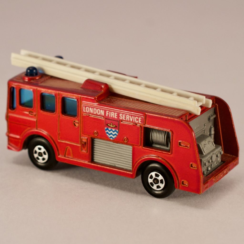 昨日、『イギリス マッチボックス(matchbox) SUPER FAST No.35 MERRYWEATHER FIRE ENGINE(箱なし)』をストアに商品登録しております。1969年の製品です。eBayでも高価で取引されております人気のアイテムです。「Matchbox Cars Wiki」によりますと3タイプ販売されており、これは一番初めのタイプです。ステッカーのしっかり張り付いております。状態は良好です。