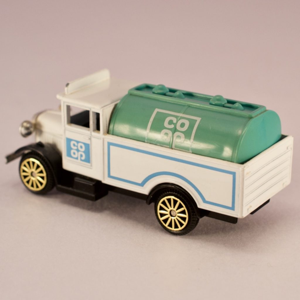 本日『ミニカー コーギー(Corgi)モーリス トラック コープ MORRIS TRUCK CO-OP(箱なし)』をストアに商品登録しております。イギリスのアンティークショップで仕入れました。タンクに印刷されております「CO-OP」とはCOOPERATIVEの略で生活協同組合(生協)のことです。タンクの中はは牛乳と思われます。