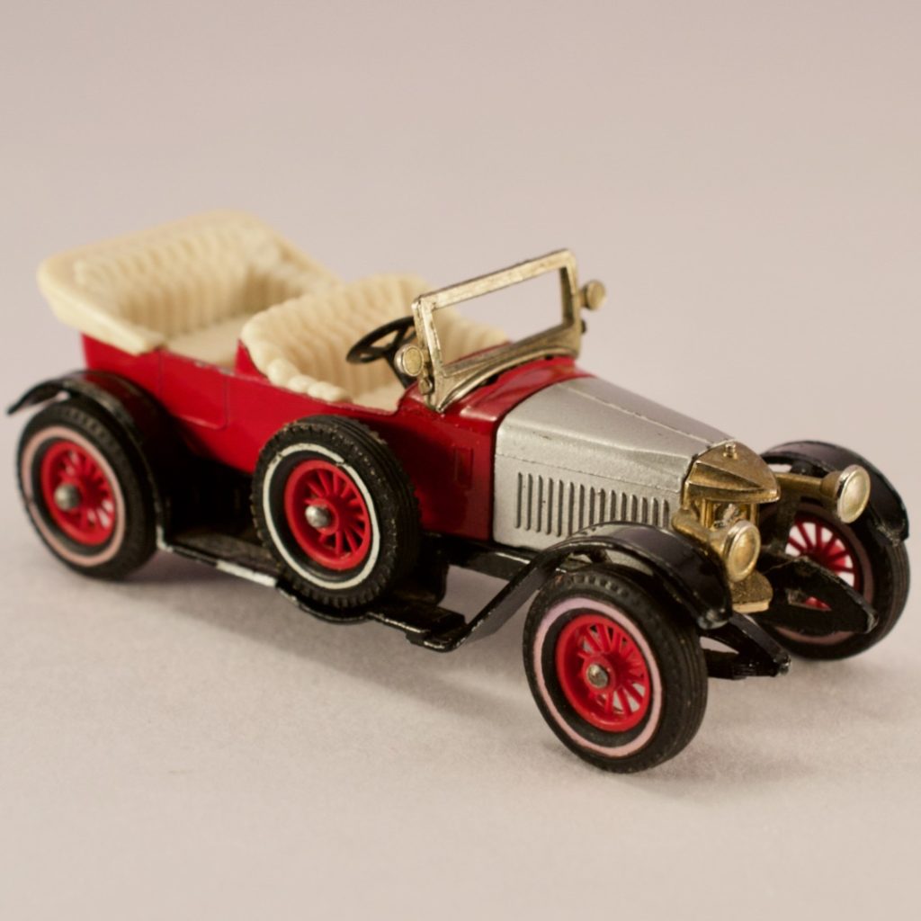 本日『ミニカー イギリス マッチボックス(matchbox) Models of Yesteryear Y-2 1914 PRINCE HENRY VAUXHALL(箱なし)』をストアに商品登録しております。1/43スケールのイギリス製です。イギリスのアンティークショップで仕入れました。1970年のモデルです。弊社には同じ形式の商品がありますが、こちらはシャーシの塗装が赤色です。また、タイヤの色が違っております。ちなみにMatchbox Cars Wikiでは赤色シャーシの写真が掲載されておりました。
