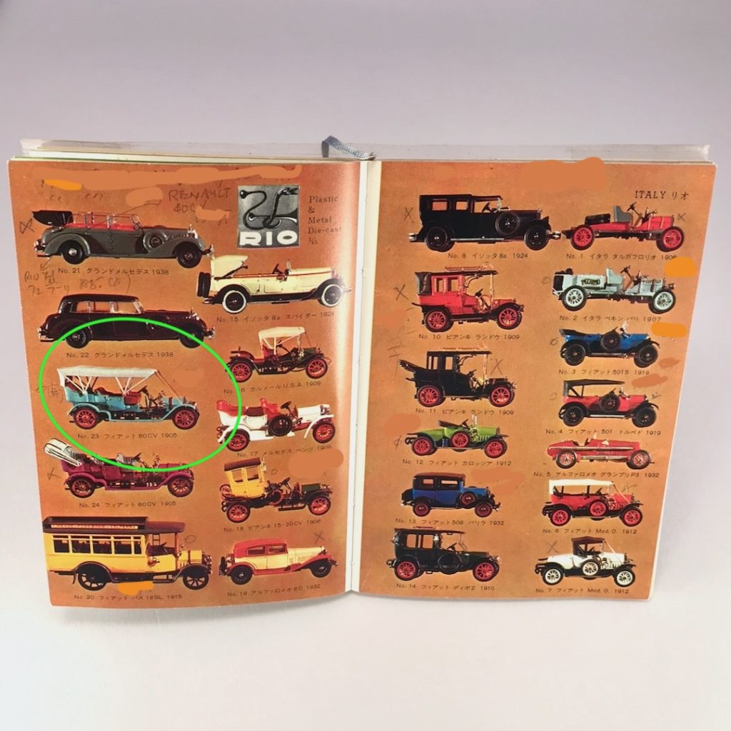 本日『ミニカー リオモデル(RIO Models) フィアット FIAT 60 CV 1906 No.23(箱なし)』をストアに商品登録しております。1/43スケール、イタリア製です。右側前方の泥除けに黒い汚れが付着しております。製造時のボンドと思われます。一番右の写真をご確認ください。このモデルも昨日の『ミニカー ドイツ ジスモデル(Ziss-Modell) No.27 N.A.G. フェトン(PHAETON) 1904(箱なし)』と同様に製造年は不明ですが「世界のミニカー (カラーブックス 127) 文庫 – 1967/8/20 中島 登 (著)」に掲載されていることより半世紀ほど前と思われます。