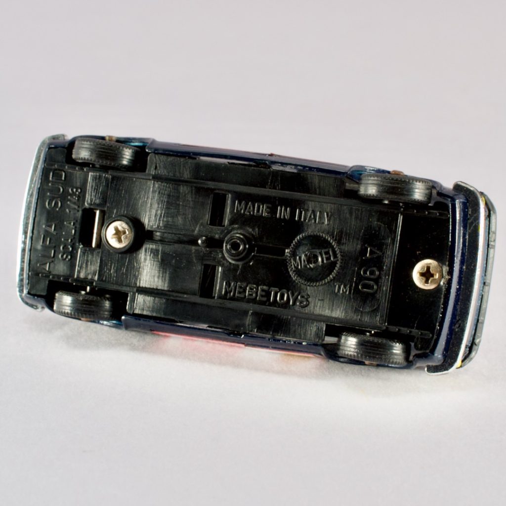 本日『ミニカー メベトーイ(MEBETOYS) アルファスッド alfa sud T rally 紺色』をストアに商品登録しております。メベトーイ(MEBETOYS)社は1959年に設立されたイタリアの玩具メーカーです。1960年代、1970年代にダイキャストのミニカーを製造販売しておりました。1969年にMattel社に買収されております。