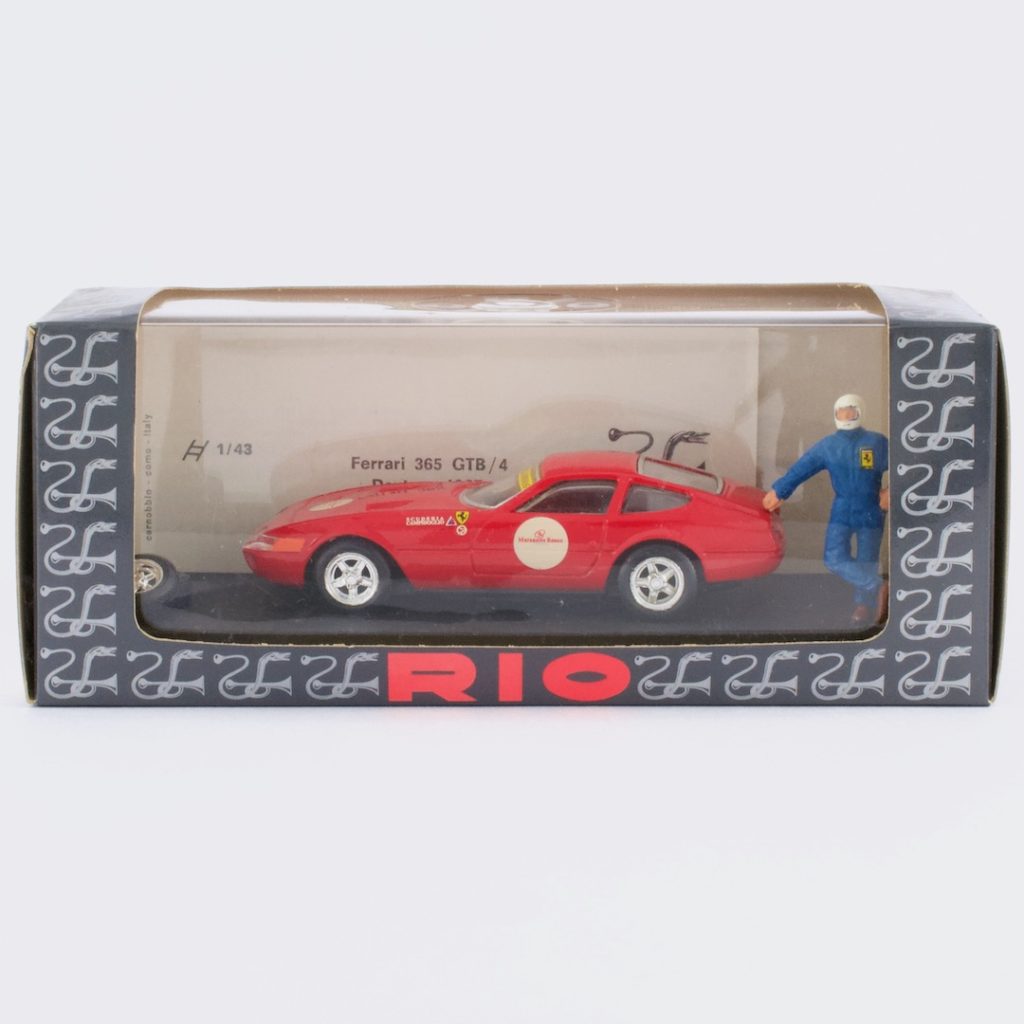 本日『ミニカー リオモデル(RIO Models) フェラーリー Ferrari 365 GTB/4 Daytona 1967』をストアに商品登録しております。1/43スケール、イタリア製です。車だけでなく、ドライバーと交換タイヤが付いております。サーキットのピットに居るような臨場感を感じます。