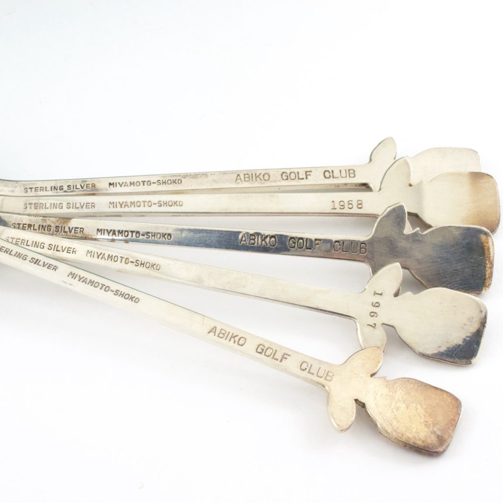 『宮本商行 銀製スプーン 我孫子ゴルフ倶楽部 5本セット』をストアに商品登録しております。「STERLING SILVER」の刻印があります。1960年代に開催されたゴルフコンペの景品と思われます。今から約50年前の話です。