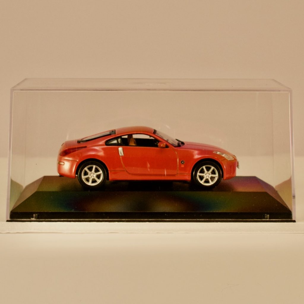 オンラインショップでポイントとなります商品の写真でございますが、弊社では電球色の光源を使っているために写真のように赤系の色が多めに入っております。普段編集に使っておりますパソコン画面で見ますとそれ程感じませんが、一部のスマホでは夕焼けの中で撮影したごとく見えてしまいます。カメラの専門誌では料理の写真などで多用される撮影環境のようです。そこで、ミニカーなど弊社の商品がより自然に写るように撮影スタジオの光学系を修正しております。